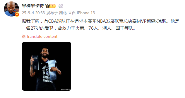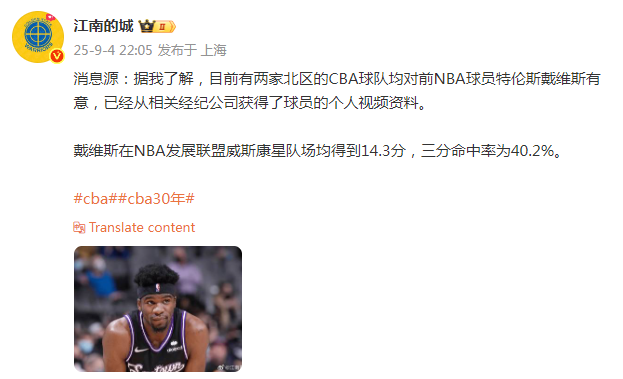 “消息源:据我向山西汾酒男篮相关渠道了解,山西男篮正在与梅森琼斯接触,如果一切顺利他新赛季将加盟CBA联赛。”博主“江南的城”在社媒上写道。